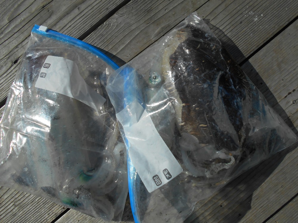 網干し・・・団子釣りで。ボラ、60cm 2本。桃の木・・・グレ、30cm頭に、少々。中ばな・・・ヤエンで。アオリイカ、800g頭に、2杯。コウイカ、1杯。も崎・・・当りは、2回。
