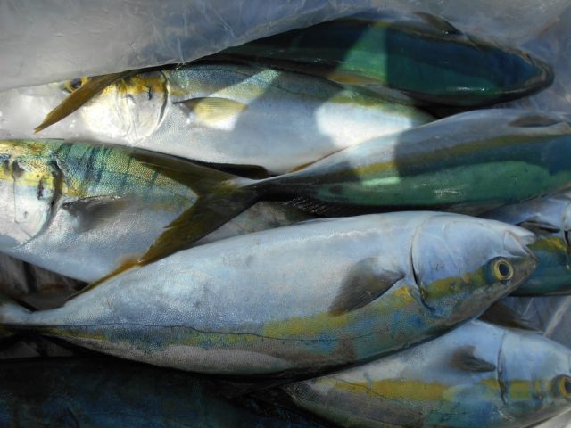桃の木・・・イナダ、39cm頭に、8本。小ダイ、など。網干し・・・アオリイカ、2杯。オオモンハタ、など。中ばな・・・アオリイカ、2杯。イナダ、2本。寺倉・・・イシダイ、など。今日は、桃の木では、イナダが多く釣れていました・・・。お疲れ様...