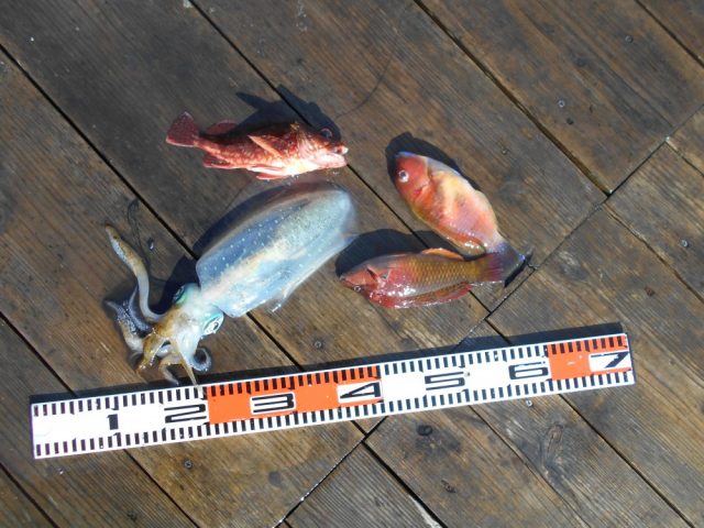アオリイカ、1杯。カサゴ、など。今日は、1名様のお客様でしたが、何とか釣れました・・・。お疲れ様でした。またのお越しを、待ってます。 -