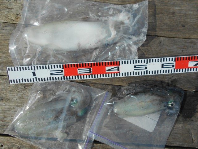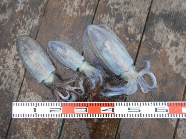 松の鼻・・・アオリイカ、760g 1杯。アオリイカ、650g 1杯。今日は、良型のアオリイカが、釣れていました・・・。お疲れ様でした。またのお越しを、待ってます。