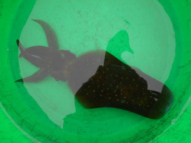 網干し・・・アオリイカ、1杯。今日は、早上がりでの釣果です・・・。お疲れ様でした。またのお越しを、待ってます。 -