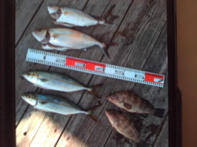 いかだ・・・シオ、46cmまで、2本。イナダ、42cmまで、2本。オオモンハタ、など。*アオリイカ、500g 1杯。*アオリイカ、1杯。*グレ、多く・・・。今日は、青物が多く・・・。お疲れ様でした。またのお越しを、待ってます。 -